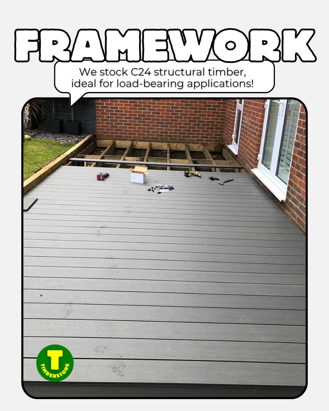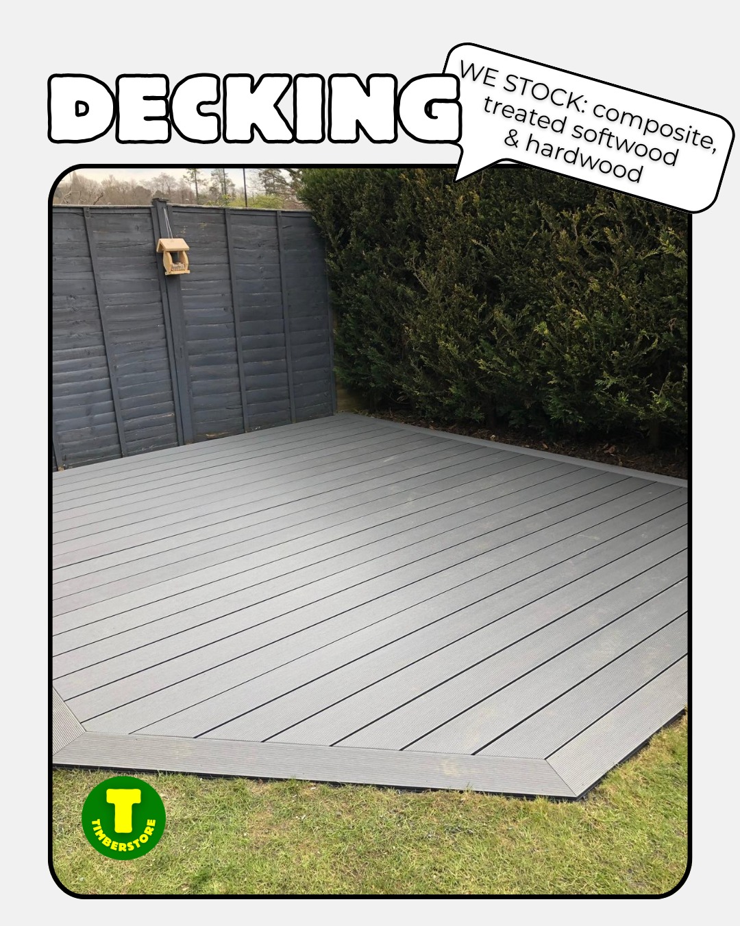 From structural timber for your subframe to choice of composite, hardwood and treated softwood decking, as well as all the finishing touches - you'll find everything you need at Timberstore, your independent one stop shop!