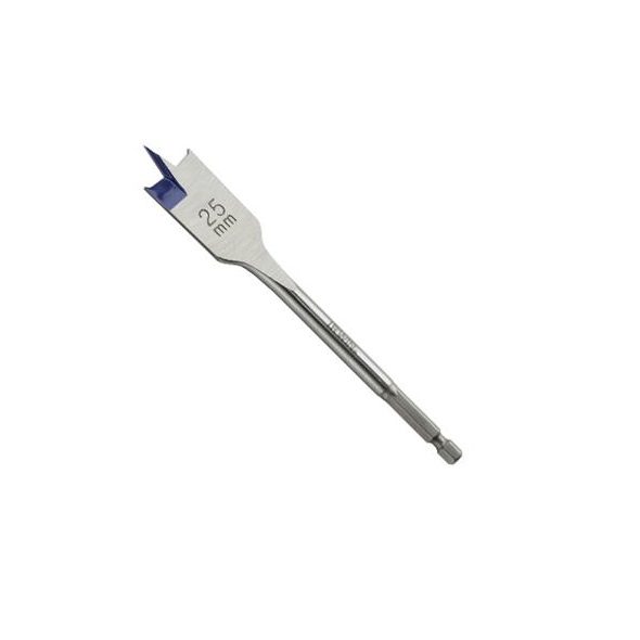 Irwin 4x blue groove flat bit has a patented groove point and cutting edge designed to cut and not scrape the timber.