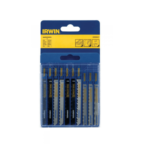 The Irwin IRW10505817 10 piece set of T-shank jigsaw blades for AEG, Bosch, DeWalt and Hitachi Jigsaws for metal and wood cutting are manufactured from high quality materials.